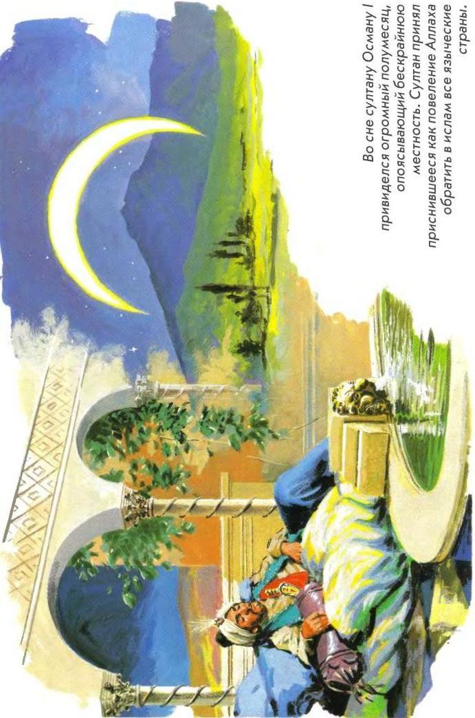 Как гласит предание, однажды ночью султан Осман I (1288–1326), по имени которого Турция прежде именовалась Османской или Оттоманской империей, увидел во сне местность, опоясанную лунным серпом. Этот сон астрологи истолковали ему как повеление Аллаха завоевать все страны, лежащие как к западу, так и к востоку от Турции, и обратить их в ислам. С султана Османа I началась эпоха турецких завоеваний, а в 1683 г. турецкие воины — янычары дошли даже до ворот Вены.