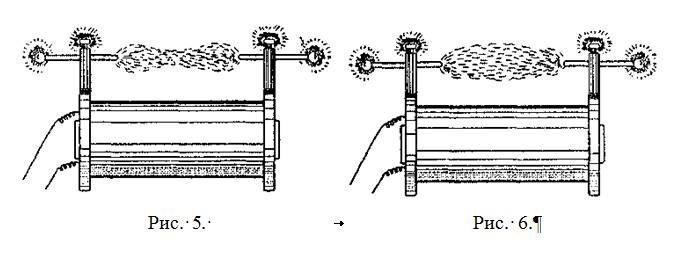 Когда частота возрастает за пределы этого значения, потенциал, конечно же, возрастает, но разрядное расстояние может, тем не менее, сократиться, сколь бы парадоксальным это не выглядело. По мере роста потенциала катушка все больше и больше приобретает свойства статической машины, до тех пор, пока, наконец, нашему взору не предстанет прекрасное явление — потоковый разряд, рис. 5, который может получаться во всю длину катушки. На этом этапе потоки начинают свободно исходить из всех острий и выступов. Множество потоков можно также увидеть в пространстве между первичной обмоткой и изоляционной трубкой. Если потенциал слишком высок, то они будут появляться всегда, даже при низкой частоте, и даже если первичная обмотка заизолирована дюймом сургуча, твердой резины, стекла или другого изолирующего материала. Это очень существенно ограничивает выход катушки, но позже я покажу, каким образом мне удалось в значительной степени преодолеть этот недостаток в обычной катушке.