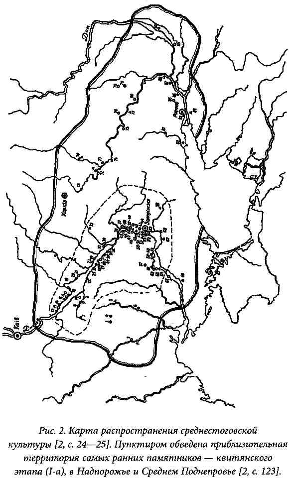 Я также никоим образом не претендую на оригинальность той концепции прародины индоевропейцев, которая будет обоснована далее. Ее суть: территория исторической прародины индоевропейцев совпадает с территорией раннего этапа среднестоговской археологической культуры конца V тыс. до н. э. Это район лесостепи и степи между реками Днепр и Дон, частично на правом берегу Днепра в районе рек Рось и Ингул и, возможно, на Нижнем Дону [см. рис. 2]. В пользу такого решения индоевропейской проблемы говорит вся совокупность данных археологии, гидронимии, лингвистики, культурологии, естественных наук и географии.
