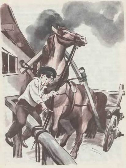 Володя бросил сумку и, на ходу открывая ножик, побежал к лошадям.
