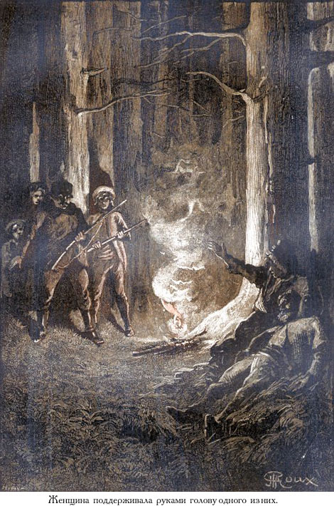 Но кто же эта незнакомка, говорившая на индейском наречии? В темноте и под капюшоном, ниспадавшим на лоб, невозможно разглядеть, какого она возраста. Позднее они все узнают; она расскажет, как попала сюда, а также как произошло двойное убийство. А сейчас необходимо немедля отнести раненого на стоянку «Прекрасной Колесницы» и оказать возможную помощь. Что касается тела второго несчастного, то назавтра они вернутся и похоронят его.