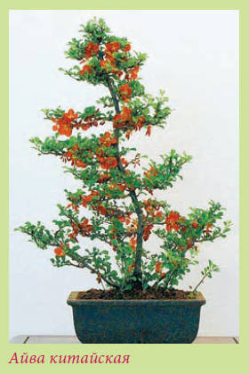Ниже перечислены виды растений, которые могут находиться на открытом воздухе (хотя некоторые и нуждаются в защите от сильных холодов). Безусловно, список далеко не полный, но в нем представлены все основные типы бонсай. Многие растения, которые имеют сходные условия содержания и принципы формирования, представлены каким-либо одним «делегатом». Например, бонсай плодовых деревьев (вишни, сливы, яблони, абрикосы) можно в общих чертах понять на примере яблони, а листопадные лесные деревья – на примерах дуба, бука, березы, вяза. Так же дело обстоит и с хвойными. АЙВА – CHAENOMELES