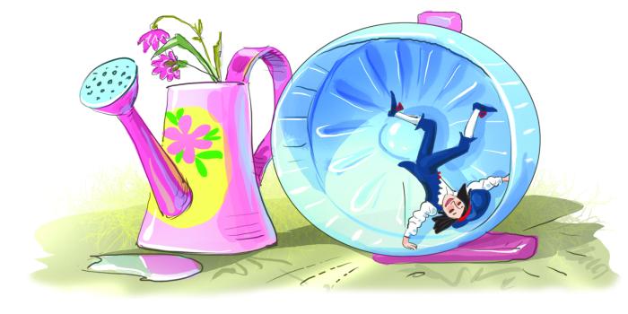 Они быстро притащили из новогодних запасников уютный голландский домик. Такие раздают детям на авиалиниях после долгого полёта. Установили его на подоконнике среди цветов. И даже поставили беличье колесо рядом с домиком – всё равно хомяк не крутится!