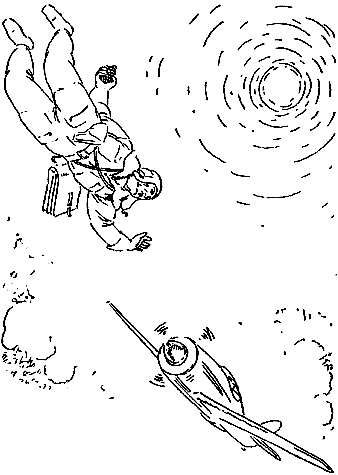 Кожин падал на него вниз головой. Одну руку он вытянул вперед, другую, с гранатой, откинул для броска. Секунда, вторая, третья… Фашист не выдержал этого испытания нервов. Боясь столкновения со странным летающим существом, он отклонился от курса и открыл Кожину плоскости крыльев.