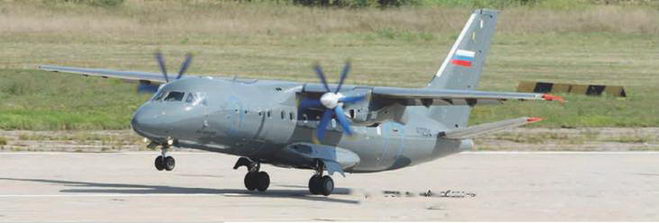 Первый самарский Ан-140-100 (RA-41254), построенный в прошлом году по заказу Минобороны России, во время дебюта на МАКС-2011. "Сдача самолета заказчику состоялась 23 декабря 2011 г., и в январе он прибыл на подмосковную авиабазу ВВС России в Чкаловском
