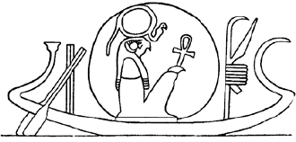 Но случалось и обратное: в область мифов и религий проникали сознание и начатки объективной науки. Религией Древнего Египта было поклонение Солнцу. Несоизмеримость Солнца и Земли, света и глаза выразилась здесь как отношения бога и человека. Этого бога воображали то соколом, то человеком с соколиной головой и солнечным диском, плавающим в ладье по небесному океану (рис. 2):