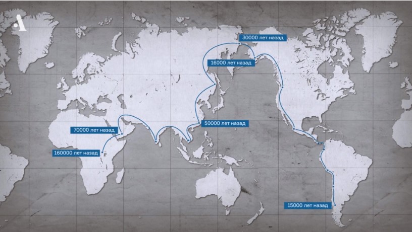 Первые переселенцы дошли до современной Азии, территории нынешнего Китая, и разделились на три группы. Одни заселили пригодные для жизни земли, и так появилась Империя Хань. Другие ушли на юг и через острова Океании добрались до современной Австралии, образовав Австралийские племена. Третьи пошли на север, на Дальний Восток, и перешли в районе Берингова пролива на Северо-Американский континент. Там пошли вдоль побережья Тихого океана уже на юг, к самой Южной Америке. Это был очень долгий переход!