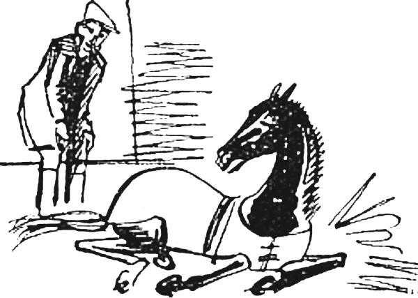 Михаил Громов, Степан Микоян, Василий Сталин, Александр Щербаков – знакомые имена сталинских соколов среди конников. Михаил Михайлович, по просьбе деда-воздухоплавателя, рекомендовал меня в конноспортивную школу. В манеже ездили мы со Степаном Анастасовичем, благодаря его отзыву был опубликован «Железный посыл» (см. далее). От Щербакова ко мне перешел дончак Зверобой. Это – на подмосковном конном заводе в Горках X, где я нередко бывал. Зверобоя на конюшне называли – Зверь. Когда к нему подходишь, он, как романтический конь в балладе Жуковского, бил ногами передними, а если всё-таки заберешься на него, рвал зубами, норовя вытащить тебя из седла. Щербаков, летчик-испытатель, стал опасаться: ему совсем ничего оставалось долетать до пенсии, а если Зверь его покалечит, не долетает до заслуженного отдыха. Подыскали доброезжего коня, чтобы испытатель, без опаски, по выходным занимался верховой ездой, мне же на том коне поручили делать проминку в рабочие дни. Еду через знакомый мне лес. Вдруг конь упирается, замирает и бьет его дрожь такой силы, что и меня трясет. Прямо перед нами пересекал тропу в свою очередь испуганный лось с короной рогов. Конь перенервничал – вскоре пал от инфаркта. Щербакову не дали знать, опасались, как бы перед почетной выслугой его самого «Кондратий не хватил».