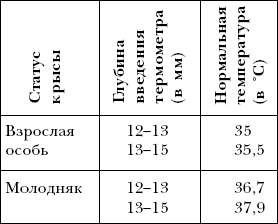 В случае появления желудочных расстройств следует поить крысу рисовым или овсяным отваром, вплоть до нормализации стула. Помимо этого, нужно измерять температуру тела зверька, для этого термометр вводится в анальное отверстие животного. Измерение температуры нужно проводить по графику, так как она меняется в течение суток (табл. 3). Для крыс вполне подойдет обычный ртутный термометр.
