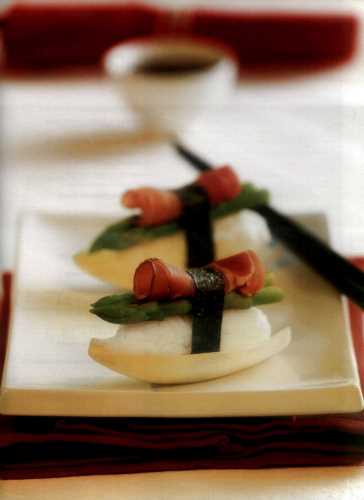 Нигири-суши со спаржей и ветчиной