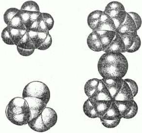Общий принцип прост: молекулы укладываются так, что «выступы» одной молекулы заходят во «впадины» другой. Это наглядно показано на рисунке 27 на примере молекул антрацена. Из рисунка ясно, какие расположения молекул осуществляются в природе, какие нет.